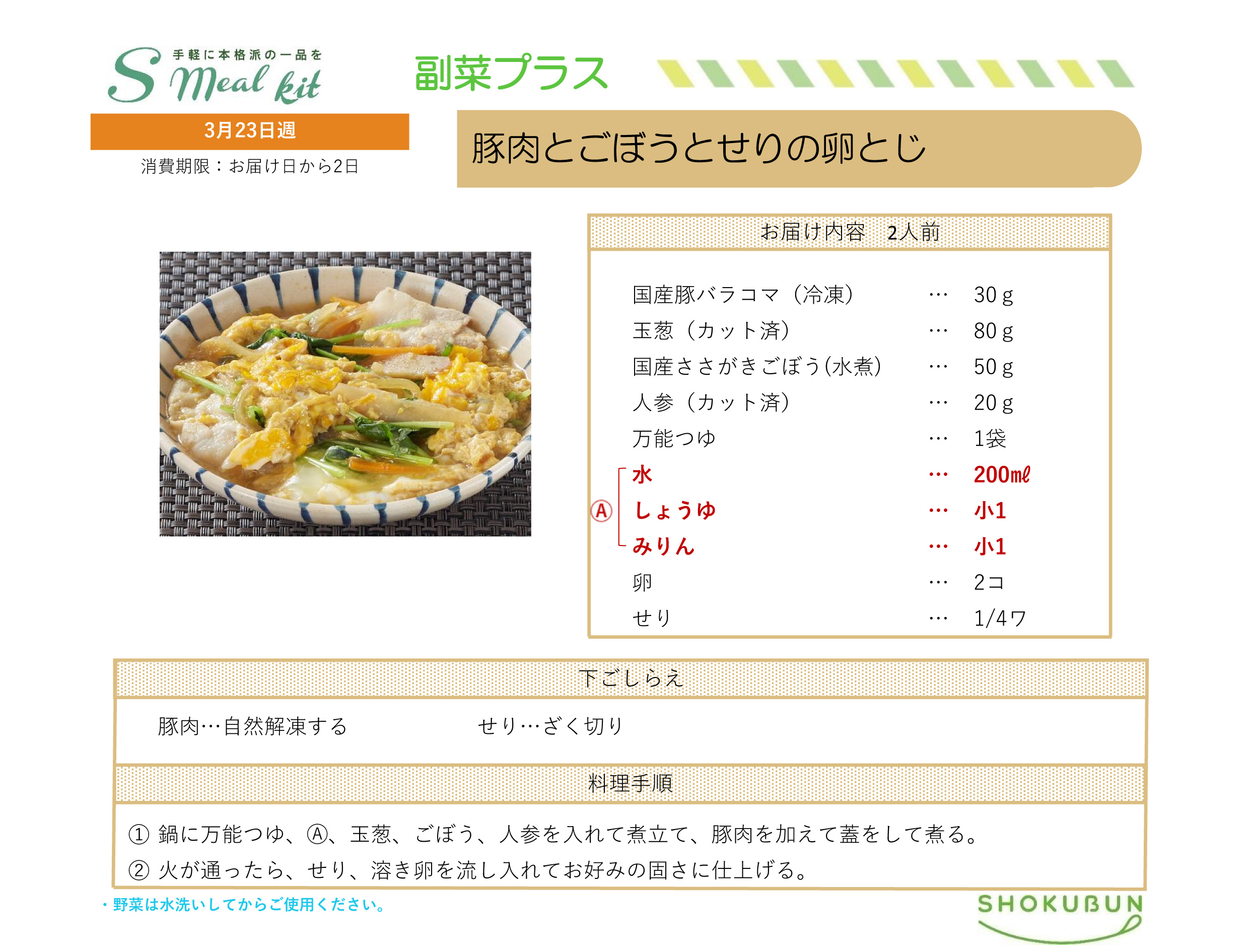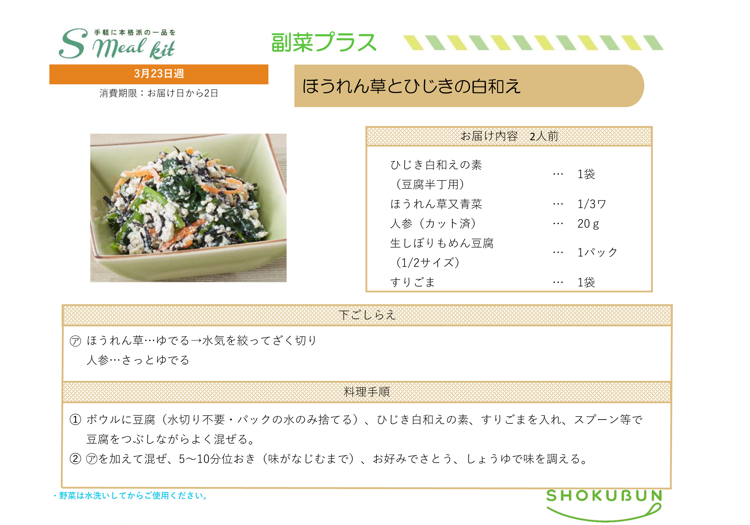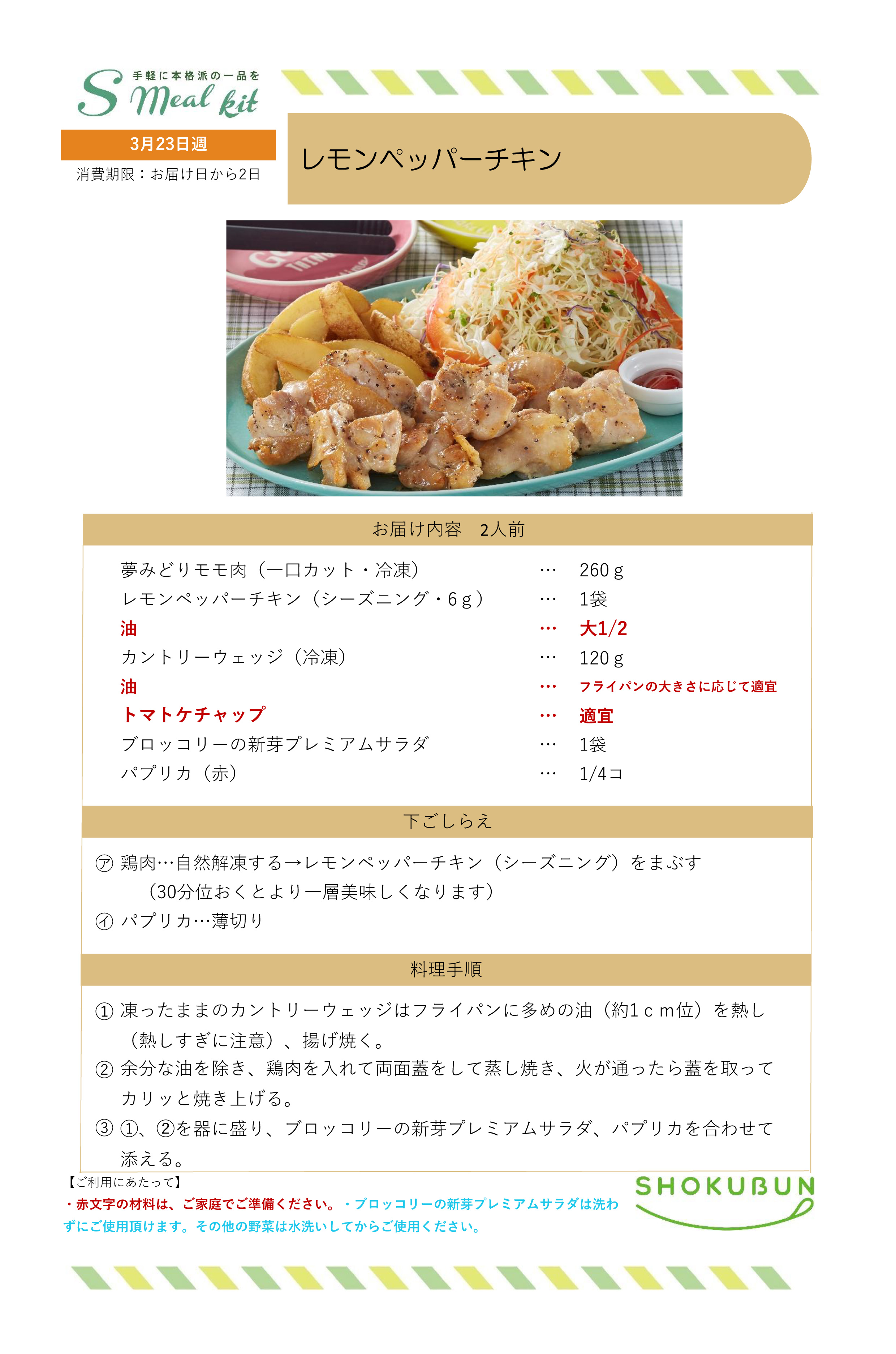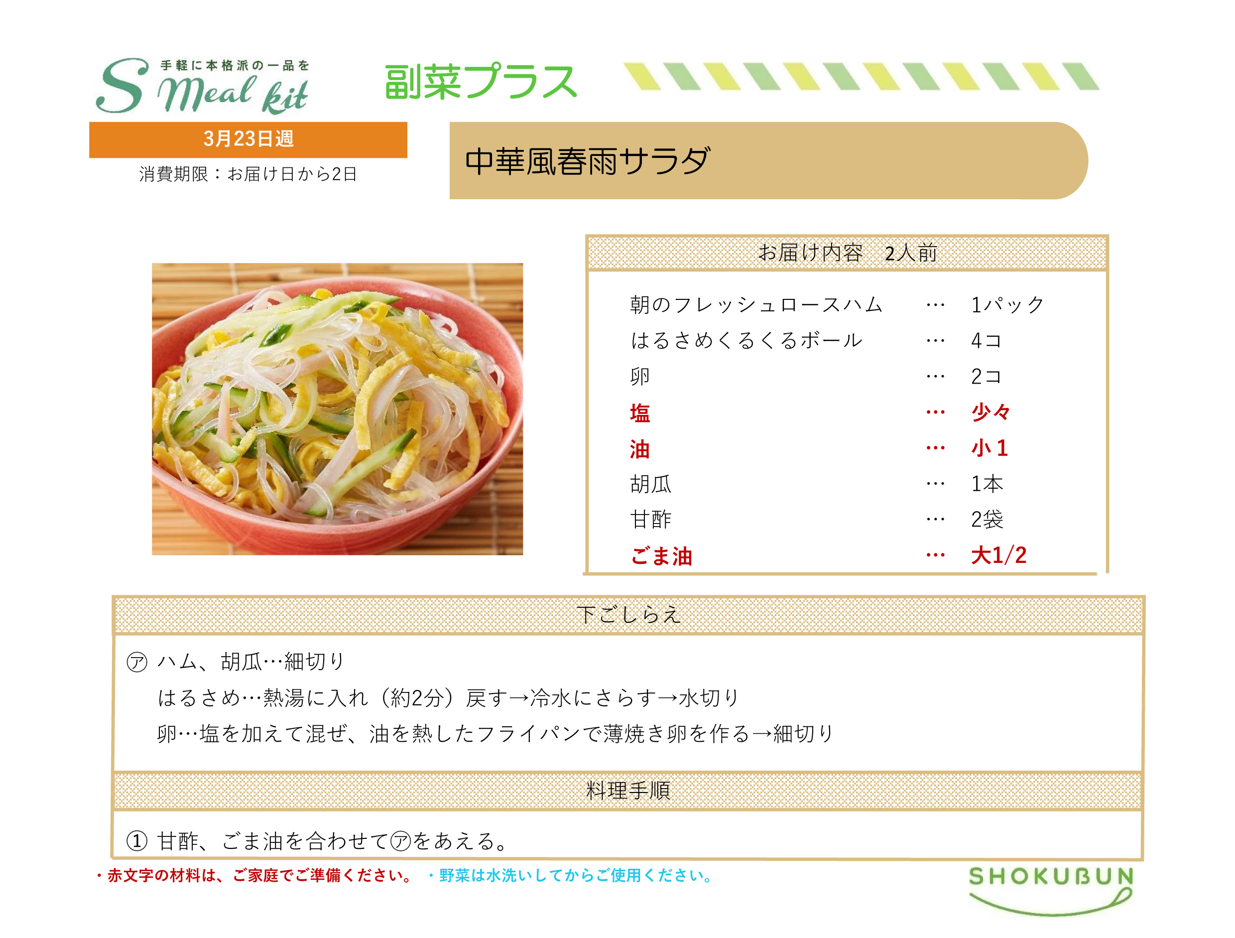 3/23週 Sミールキット・副菜プラス 作り方