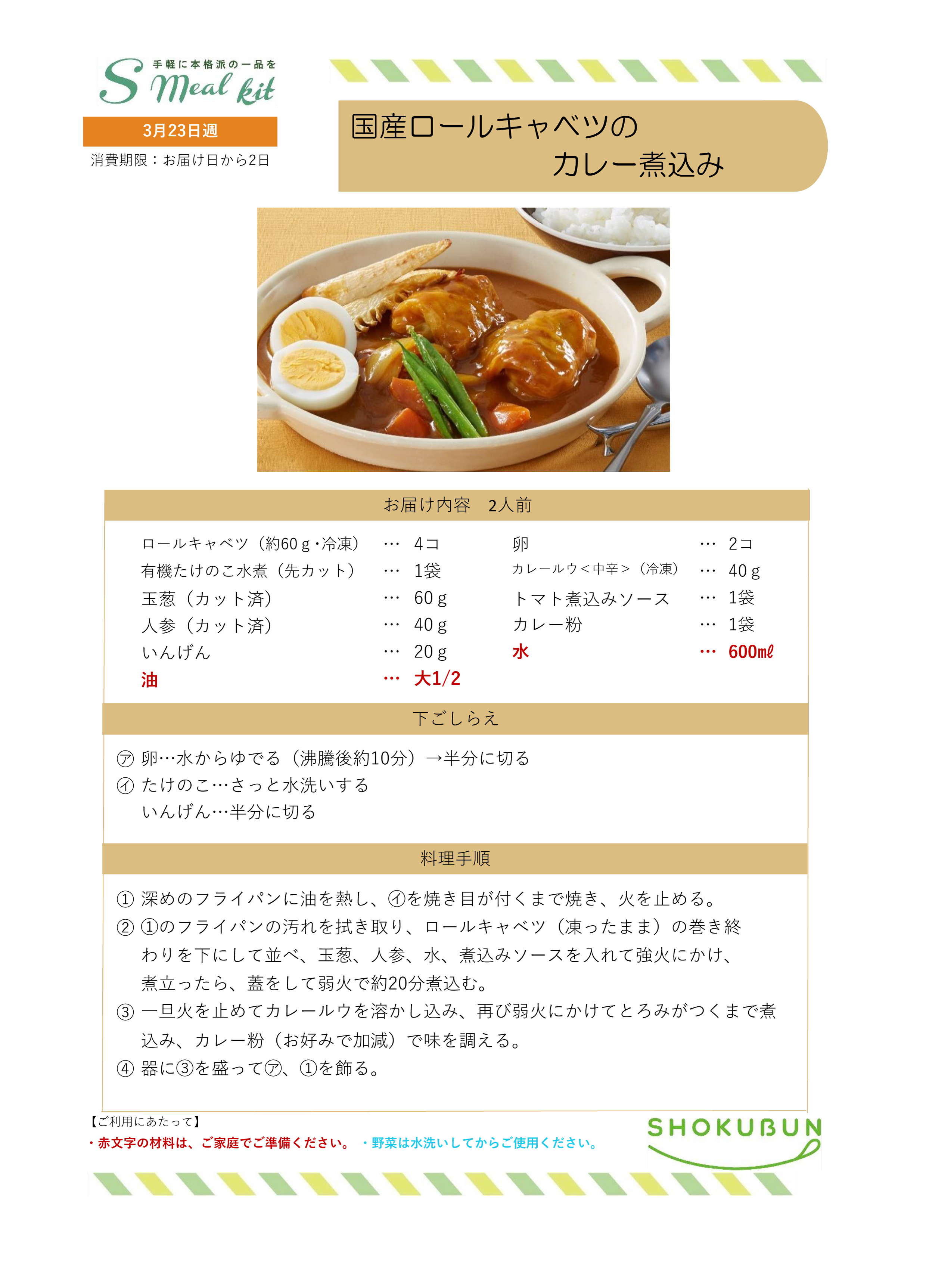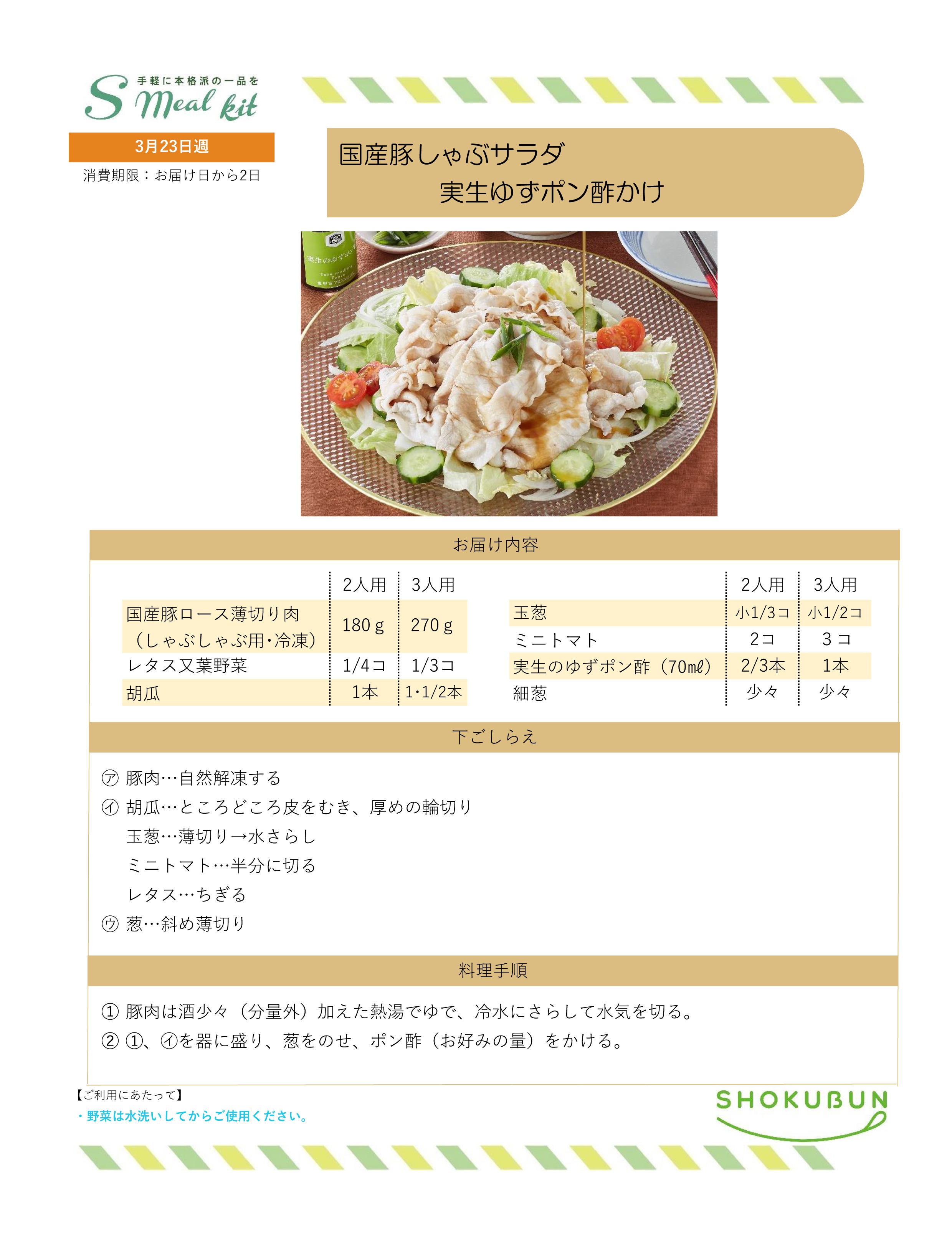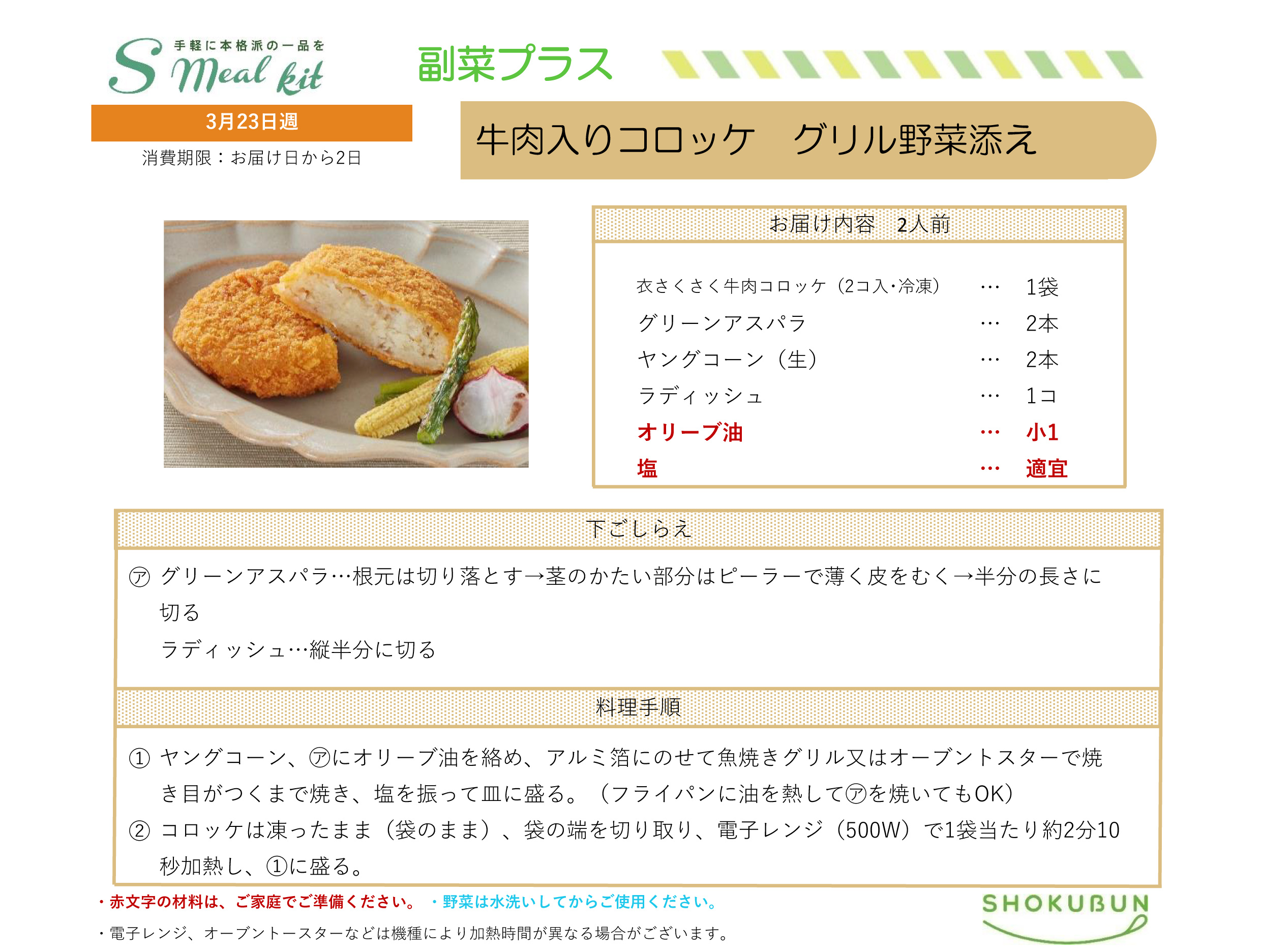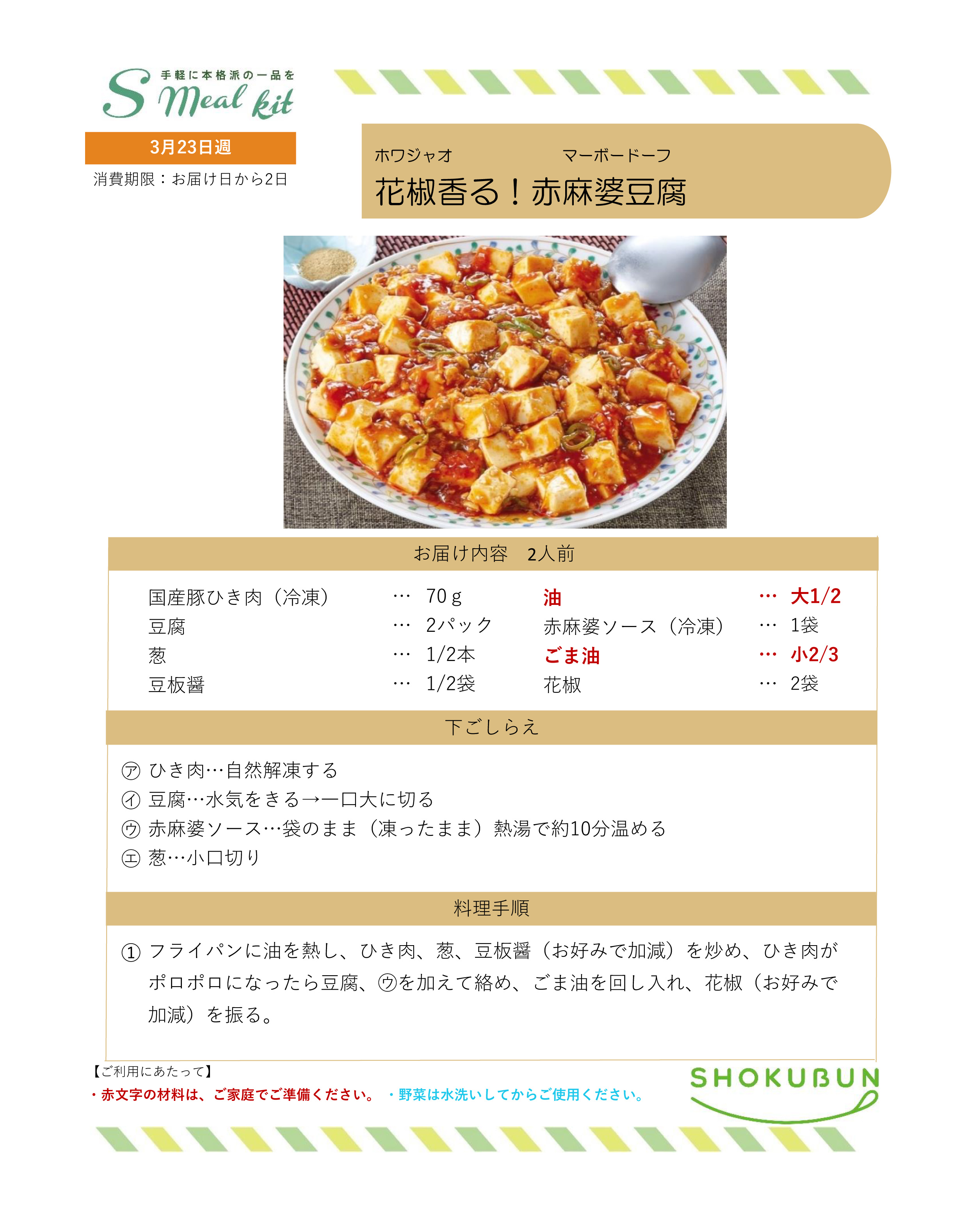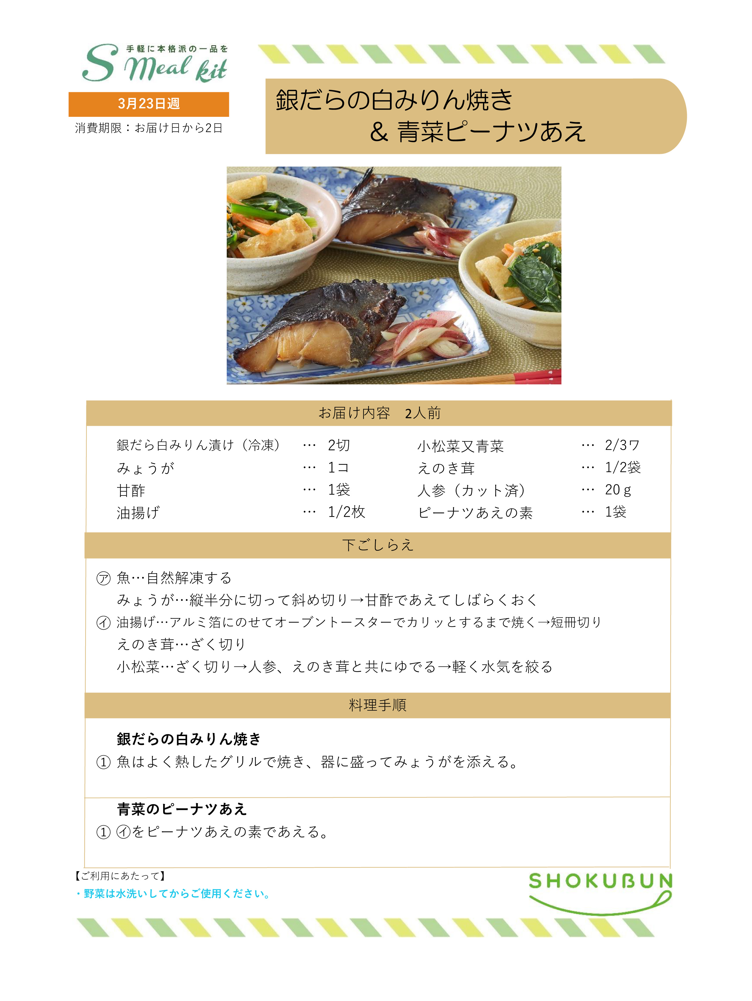 3/23週 Sミールキット・副菜プラス 作り方